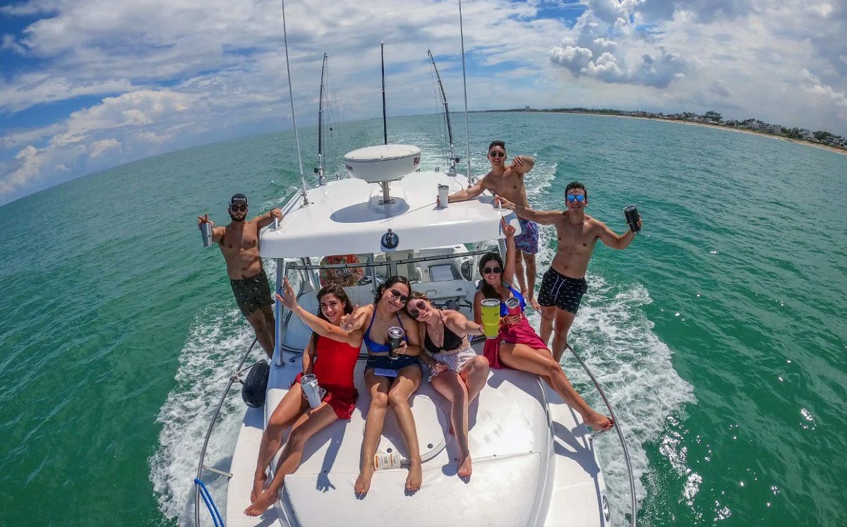 Fiesta en bote al atardecer